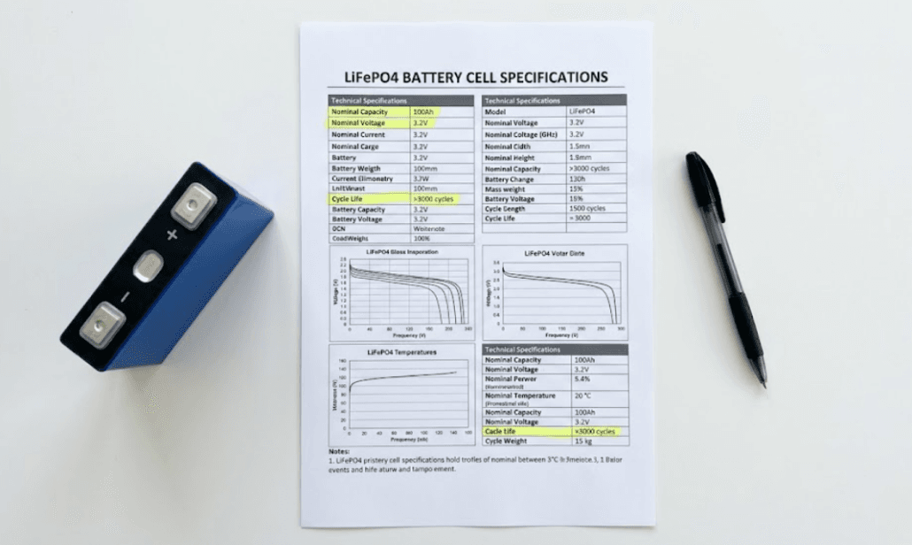This guide covers every field of a LiFePO4 battery spec sheet in plain language.
